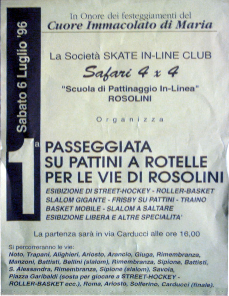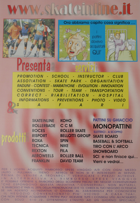 Nasce nel 1989; ha sempre erogato servizi inerente la disciplina dello skate in line (realizzati con i propri mezzi finanziari), dopo un'accurata selezione dei prodotti esistenti sul mercato. Le aziende Produttrici Rollerblade – Roces – Risport etc.. hanno usufruito e goduto dei nostri servizi senza alcuna convenzione. Da qualche anno č possibile godere dei nostri servizi, solo per i prodotti di nostra produzione. Chi decide di acquistare altri prodotti deve fare richiesta alle aziende per poter usufruire dei nostri servizi. L'azienda nasce in collaborazione con la gioielleria Ignaccolo con i propri mezzi finanziari senza l'appoggio di terzi. Dopo un'accurato sondaggio a livello nazionale, abbiamo potuto selezionare i migliori prodotti sul mercato internazionale e a seguito fornire un'attento servizio in merito, attenti anche alla sicurezza ci siamo adeguati alle leggi sul Codice della Strada art. 190/cdc (vedi sezione servizi).